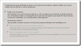 WIndows 2008 introduces a new key store called CNG. This key store offers better protection, so it is recommended to use this new key store for both your root and issuing CA’s. For the root CA, you should enable "Strong private key protection" as well.