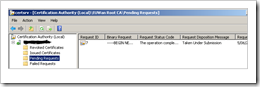 As with every system configuration, you need to think about the management and maintenance processes that need to be put in place. Two of the most common processes related to a CA are approving/rejecting pending requests, and renew expired certificates. The Windows 2008 CA mmc includes a view for pending requests, and you can sort on expiration date in the ‘issued certificates’ view to see which certificates are about to expire. But both actions require manual intervention, so I wrote a little tool that will allow you to script these 2 actions and send you an email if requests need to be approved, or certificates are about to expire. Check out this post for more info about this tool.