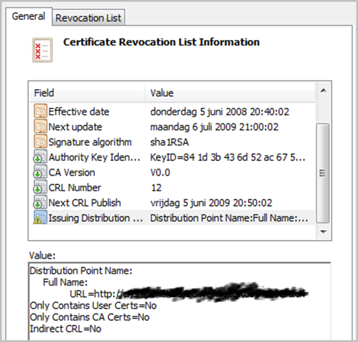 The CRL validity determines how often a CRL will be renewed & should be published on the CRL distribution point. A second CRL lifetime setting is the delta crl lifetime. This indicates how often the delta crl is created and published. Since the delta only contains changes, this can happen faster than the full (base) crl. For an internal issuing CA, you can set the full crl lifetime to e.g. 1 week, and the delta crl to one day. Luckily, you can specify a grace period as well (e.g. 2 days), so clients would have 2 additional days to connect to the crl distribution point. As with many security related settings, you need to find your own balance between security and functionality. The faster you set crl/delta crl expiration, the more accurate they will be, but this comes at a resource/bandwidth/functionality price. It’s up to the applications/developers to determine the behaviour when the latest crl could not be downloaded / used for validation. The application will decide whether this will become a blocking or non-blocking issue.