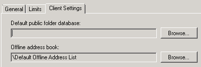 - review mailbox database settings (“EMC” – “Server Configuration” – “Mailbox” – Client Settings tabsheet) and verify that the Default Offline Address Book field is configured and points to the correct OAB