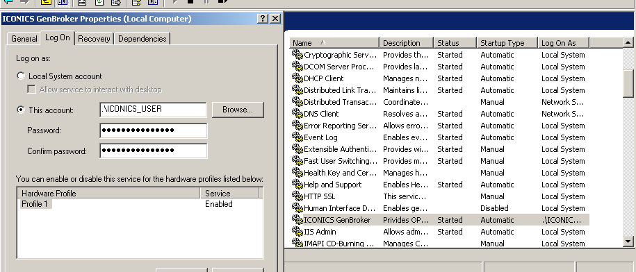 During the installation, I was prompted to either select an existing administrator user or to create a new one (ICONICS_USER) and have it added automatically to the administrators group. This account is used to run the genbroker.exe service.