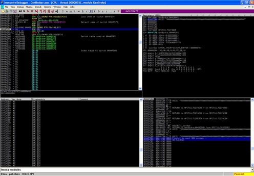 We can see that the only obvious module that might contains unicode pointers is the main application, GenBroker.exe.